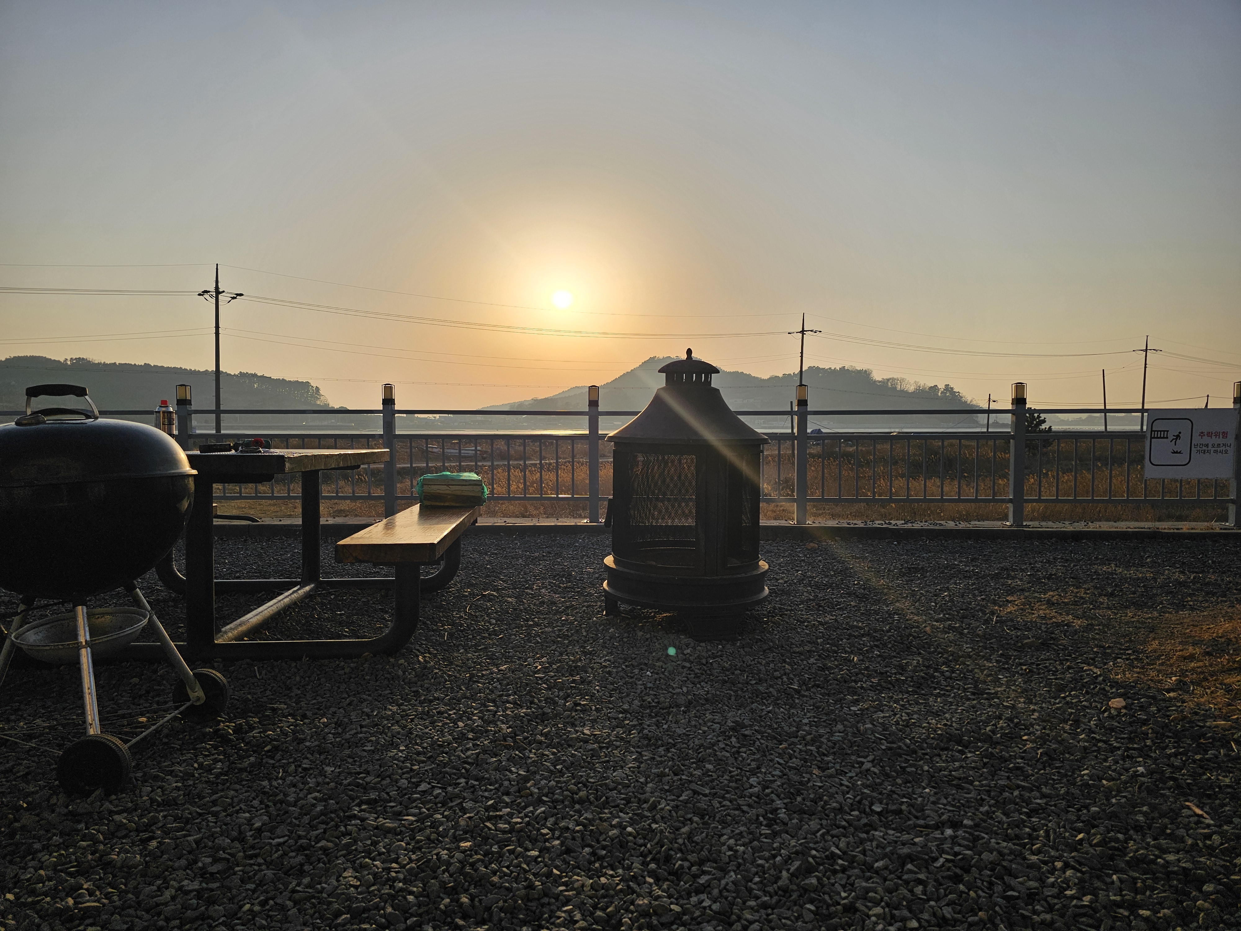 카메라에 담을 수는 없었는데 지는 해 그러데이션이 장난 아니었어요.