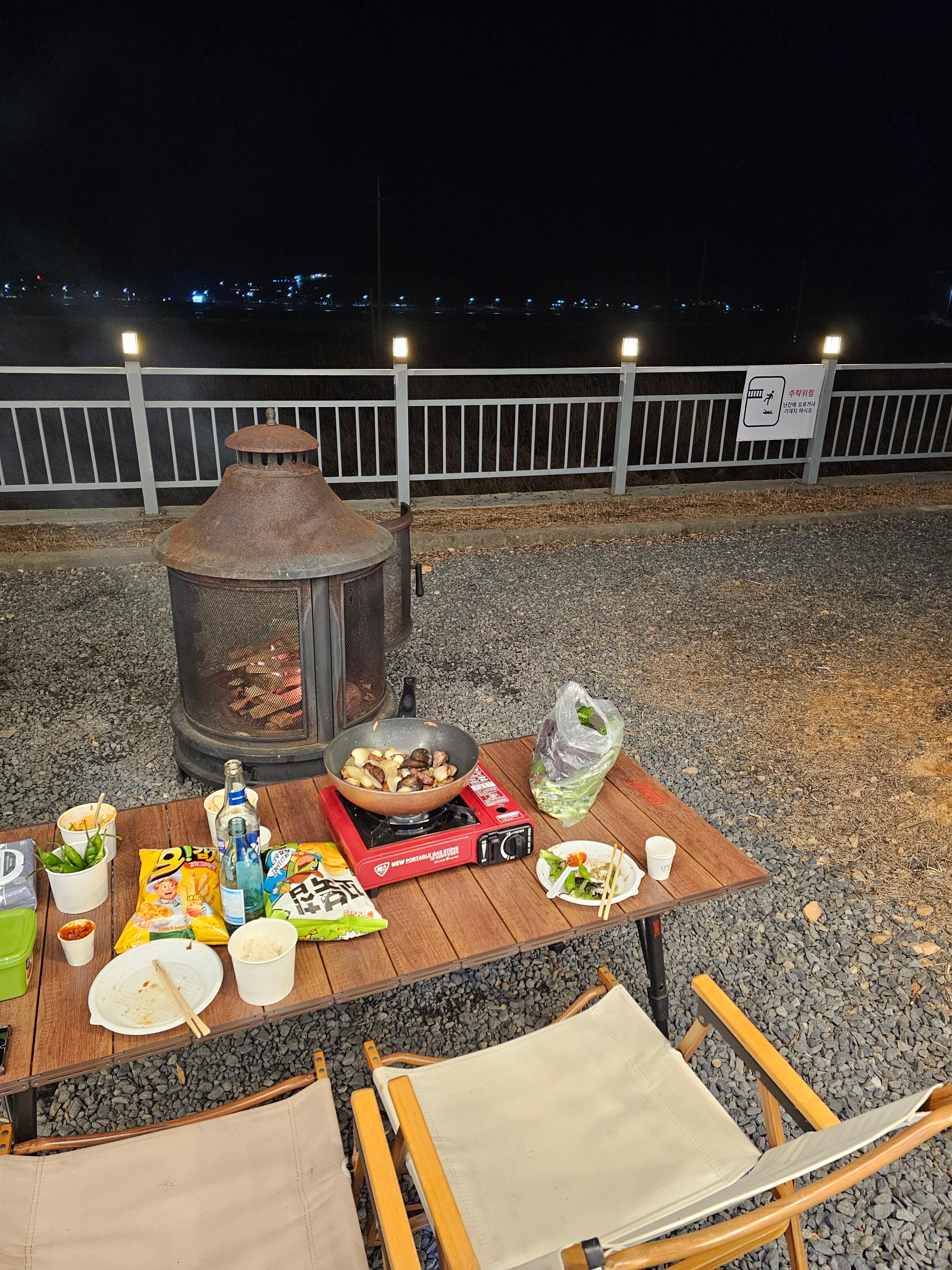 2차? 2차는 불멍과 함께 하고 싶어서 살짝 치울 겸 바로 옆으로 이동했습니다.