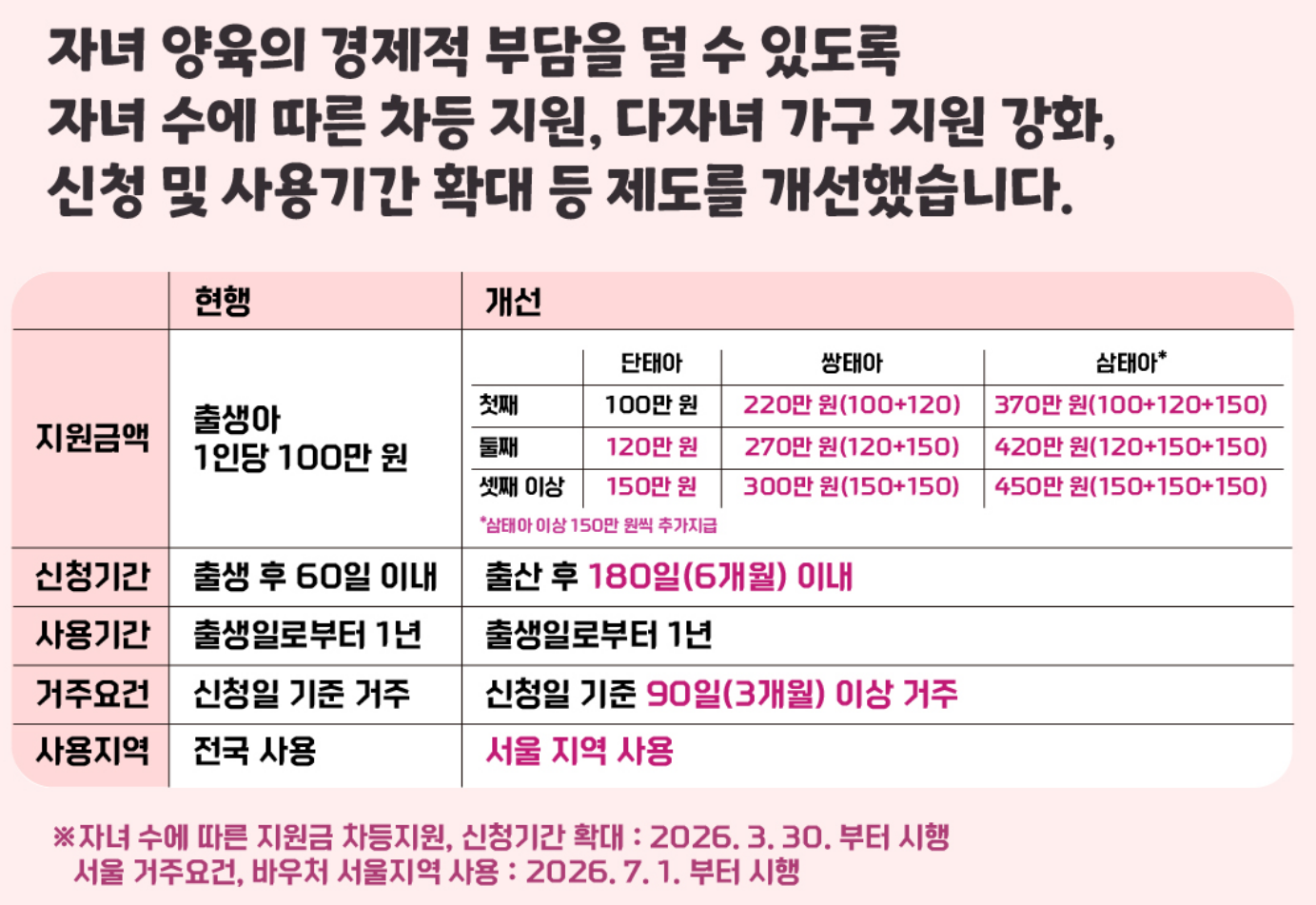 - 2026년 3월 30일부터 : 지원금 확대 및 신청기간 확대